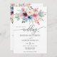 Invitation Elégant bleu Bourgogne Fleurs QR Code Mariage