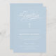 Bleu clair avec texte blanc, invitation du Baptême Saint. Le script élégant est le point central. Un élément croisé peut être déplacé pour convenir à votre texte, cliquez sur "customiser". La couleur du dossier est personnalisable. (Cliquez sur "Customisez-le" et utilisez la gouttière pour choisir n'importe quelle couleur, ou téléchargez votre propre photo).