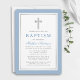Élégant Bleu clair et Baptême argenté Invitation avec croix.