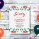 Cette élégante invitation à l'anniversaire fleuri est parfaite pour un anniversaire floral d'été moderne. Le design romantique présente des roses bleues et rouges fleuries avec une élégante typographie noire et rouge sur un arrière - plan blanc.