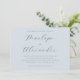 This elegant wedding invitation features a serene light blue background with a minimalistic layout that emphasizes sophistication and tranquility. The design showcases a refined script font for the names, creating a focal point amidst ample negative space, while the rest of the text is presented in a clean serif typeface. Perfect for an upscale event, this invitation conveys a mood of anticipation and celebration, ideal for couples seeking a classic yet modern aesthetic. Its customizable elements allow for personalization, making it suitable for any special occasion.