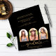 Invitation Elégant Boho Arch Black Gold 3 Photo Graduation