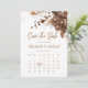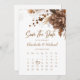 Célébrez votre amour et marquez la date avec notre magnifique faire-part de mariage Save the Date. Ce design enchanteur embrasse l'esthétique rustique et boho, dégageant chaleur et charme. La riche palette de couleurs en terre cuite ajoute une touche d'élégance, tandis que les motifs floraux complexes insufflent l'invitation à la beauté naturelle. Ce qui le rend encore plus spécial est le calendrier personnalisable, vous permettant de mettre en valeur votre jour de mariage avec une touche personnalisée. Avec cette invitation, vous pouvez associer sans effort l'ambiance rustique et boho à votre style unique. Donnez le ton de votre inoubliable fête mariage avec cette invitation personnalisable et captivante Save the Date.