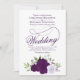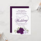 Cette belle faire-part de mariage est ornée d'un joli bouquet d'aquarelle peint à la main de roses, de fleurs, d'eucalyptus feuille et de verdure dans les tons violets, lavande et prune. Le design se compose d'un script de calligraphie sophistiqué avec une longue queue bouclée, ce qui le rend à la fois moderne et classique. Une façon élégante, sophistiquée et chic d'invitation vos amis et votre famille à partager dans votre journée spéciale. Le dos de la carte est une couleur violet marbrée profonde avec un code QR et de l'espace pour diriger vos invités vers votre site Web pour plus d'informations et à RSVP.