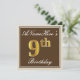 Invitation Elégant, Brown, Faux Gold 9e anniversaire + Nom