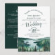 This beautiful wedding invitation features a rustic yet beautiful design with lacy calligraphy and a watercolor landscape of Lake Tahoe with mountains and pine trees. The back has room for you to list details and information along with a customizable QR code to direct your guests to your wedding website for information and/or to RSVP. The invitation is designed so that it will work well with a standard or an arch cut. Stylish, elegant, posh, and glam, this invitation will make a lasting impression and is a wonderful way to invite your guests to share in your joy on your special day.