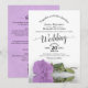 This beautiful wedding invitation features a stunning floral design with lacy calligraphy and a single long stemmed lilac purple colored rose lying on its side mirrored in a pool of water. The back has room for you to list details and information along with a customizable QR code to direct your guests to your wedding website for information and/or to RSVP. The invitation is designed so that it will work well with a standard or an arch cut. Stylish, elegant, posh, and glam, this invitation will make a lasting impression and is a wonderful way to invite your guests to share in your joy on your special day.
