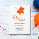 Cette élégante invitation d'anniversaire d'automne est parfaite pour un anniversaire d'automne moderne. Le design simple est composé de feuilles de automne rouge avec une élégante typographie noir et orange sur un arrière - plan blanc.