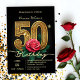 Invitation Elégant Chic Red Rose & Gold Numéro 50e anniversai