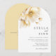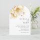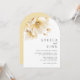 Élégant et romantique grand bouquet aquarelle de fleurs blanches jaunes et dorées en haut de l'invitation de mariage.