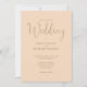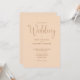 Cette invitation de mariage à l'écriture élégante et minimaliste couleur pêche douce peut être personnalisée avec vos informations dans une typographie chic avec les détails de votre site web de mariage et votre code QR au verso. Conçu par Thisisnotme©