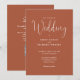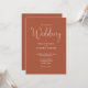 Cette invitation de mariage à l'écriture élégante et minimaliste en terre cuite peut être personnalisée avec vos informations en typographie chic avec les détails de votre site web de mariage et votre code QR au verso. Conçue par Thisisnotme