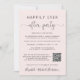 Élégant étage rose clair ou faire-part de mariage privé et invitation à la réception ou à la fête. Sur le devant, "Happily Ever After Party" est écrit dans un mélange de typographie simple et d'un script élégant avec des swashes, et vous pouvez personnaliser votre message et invitation en plus de détails, créer un code QR lié à votre site Web mariage pour que vos invités à scanner pour plus d'informations et à RSVP en ligne, et ajouter vos noms dans un script signature. Au verso, vous trouverez votre photo de mariage préférée, vos prénoms et les dates de mariage et de réception.