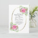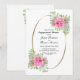 Une élégante invitation à dîner fiançailles à la floraison rose encadrée d'or.