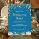 Invitation Elégant Dîner Thanksgiving Aquarelle Bleu Chute