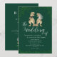 Dark Emerald Green and White Dinosaur Wedding Invitation Fun Modern T-Rex Bride and Groom Design