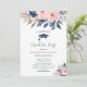 Faites de votre cérémonie de remise des diplômes une expérience inoubliable avec cette invitation sophistiquée. Le design présente de belles fleurs de pivoine rose et marine, ce qui en fait à la fois sophistiqué et charmant, tandis que le casquette symbolise la signification de l'occasion. Utilisez les outils de conception pour customiser le texte et la police. Cette invitation impressionne vos invités et donne le ton d'une fête de remise de diplômes mémorable !