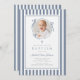Invitation Elegant Dusty Blue Bow Photo Boy Baptism