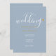 Invitation Élégant Dusty Blue Script Gold Heart Mariage
