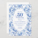 Invitation Elegant Dusty Blue Toile de Jouy 50th Birthday