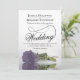 Cette belle faire-part de mariage est ornée d'une superbe photo d'un seul rose à long tige de couleur violet poussiéreux, allongé sur son côté, se reflétant dans un bassin d'eau avec vagues et ondulations. Le design se compose d'un script de calligraphie sophistiqué avec une longue queue bouclée, ce qui le rend à la fois moderne et classique. Une façon élégante, sophistiquée et chic d'invitation vos amis et votre famille à partager dans votre journée spéciale. Le dos de la carte est en lavande marbrée ou couleur lilas avec un motif moelleux.