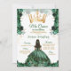 Invitation Élégant Emerald Green Floral Gold Crown Mis Quince