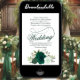 Cette belle faire-part de mariage est ornée d'un joli bouquet d'aquarelle peint à la main de roses, de fleurs, d'eucalyptus feuille et de verdure dans les tons vert émeraude, menthe et sauge. Le design se compose d'un script de calligraphie sophistiqué avec une longue queue bouclée, ce qui le rend à la fois moderne et classique. Une façon élégante, sophistiquée et chic d'invitation vos amis et votre famille à partager dans votre journée spéciale. Le dos de la carte est une couleur verte marbrée profonde avec un code QR et de l'espace pour diriger vos invités vers votre site Web pour plus d'informations et vers RSVP.