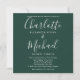 Doté d'élégants noms de style signature et de votre photo choisie, ce faire-part de mariage élégant peut être personnalisé avec vos détails mariages dans la typographie moderne sur un arrière - plan vert émeraude. Vous pouvez customiser la couleur arrière - plan pour correspondre à votre thème mariage. Conçu par Thisisnotme©