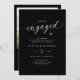 Set the stage for a stylish celebration with these modern black engagement party invitations featuring elegant white script typography. The minimalist design blends simplicity and sophistication, while the couple’s photo on the back adds a personal touch. Perfect for hosts planning a chic, contemporary engagement party that feels both elegant and timeless.
