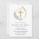 Invitation Élégant Eucalyptus Gold Cross Script Baptême