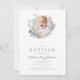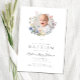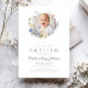 Élégant Fleur sauvage Wreath Photo Baptism Invitation. Pour les meilleurs résultats téléchargez une image carré du bébé.