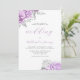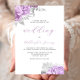 Cette élégante invitation au mariage présente des bouquets de fleurs lilas ornés de feuillage argenté. Le mot "mariage" et les prénoms du couple apparaissent dans le magnifique script lilas calligraphie, avec le texte restant dans le gris charbon sans serif sur un arrière - plan blanc. Un design floral lilas et argenté plus grand et coordonné apparaît sur le dos.