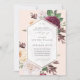 Une invitation romantique, vintage mariage de automne avec de belles botaniques et une forme géométrique moderne avec cadre rose or et couple monogramme.