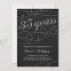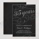 Cette invitation élégante et stylée pour une fête de 35e anniversaire de mariage présente des fioritures vintage élégantes, une calligraphie qui indique "35 ans", un faux feuillet d'argent et un fond chic noir.