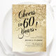 Elégante invitation à la fête du 60e anniversaire. Design élégant en parties scintillant d'or et de noir. Caractéristiques police de script de typographie et confetti. Parfait pour une célébration anniversaire féminine élégante. Personnalisez avec vos propres détails. Message-moi si vous avez besoin d'âge personnalisé. Invitations Zazzle imprimées ou téléchargement instantané modèle imprimable numérique.