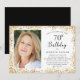 Cette 70e invitation de fête d'anniversaire est parfaite pour tous ceux qui cherchent à porter un toast à 70 ans et fabuleux! Le design comprend une bordure de parties scintillant dorée glamour et une élégante typographie manuscrite. Téléchargez facilement votre propre photo et modifiez tous les détails en utilisant le modèle fourni. Veuillez contacter le concepteur pour toute question concernant ce design ou pour tout produit correspondant.