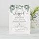 L'élégante invitation de la partie d'engagement Eucalyptus botanique présente un arrangement de feuilles d'eucalyptus aquarelle et le feuillage, menant au titre "We are Engaged" en lettres manuscrites chic. Customisez avec les champs fournis avec vos informations. ***Si vous avez besoin d'aide, cliquez sur le bouton de contact sous la description du produit.