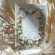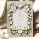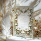 Introduisez votre mariage avec style et grâce en utilisant ce faire-part de mariage d'hibiscus blanc étonnant. Le design comprend des fleurs d'hibiscus douces entourées d'un feuillage vert complexe et encadrées par des ornements de luxe en faux or baroque et d'inspiration art déco. L'arrière - plan vert sage ajoute une touche élégante, créant une atmosphère intemporelle et romantique. Idéal pour les mariages qui allient sophistication moderne et charme vintage. Veuillez noter que l'or et les effets gaufrés sont imprimés et ne comprennent pas de véritables feuilles métalliques ni de textures surélevées.