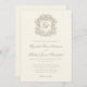 This elegant ivory monogram wedding invitation features an ornate crest with interlocked fancy script calligraphy for the initials of the bride and groom and the names. Find matching products in the collection, or message me through Zazzle Chat for more products and design tweaks.
