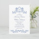 Invitation Elégant Mariage Baroque Bleu Ornate Frame Photo QR
