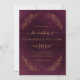 Faire-part de mariage élégant et classique, avec design imitation feuille d'or avec éléments botaniques sur un arrière - plan rouge bordeaux foncé.
