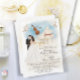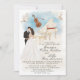 Mariage romantique Invitation élégante représentant Mariée et Salle à un spectacle Piano et Violon et colombes volant autour d'un arrière - plan d'or avec deux colombes sur le dos se soutiennent pour toujours