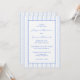 Donnez le ton à votre mariage côtier avec cette invitation intemporelle bleue et blanche, avec des bordures de coquillages délicates dessinées à la main pour une touche marine raffinée. Parfait pour les mariages sur la plage, les cérémonies d'été ou les élégantes célébrations du club de yacht, ce design allie élégance classique et charme balnéaire. Personnalisable avec vos noms, date mariage et les détails du lieu, c'est la façon idéale pour les personnes aimées invitations à votre journée spéciale en style.