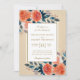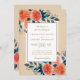 Ce design faire-part de mariage présente des fleurs d'aquarelle orange et du feuillage bleu sur un bel arrière - plan crème.