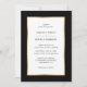 Elégant faire-part de mariage noir et or avec cadre doré encadrant les détails mariages. Éléments correspondants disponibles.