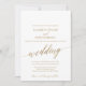 Cette élégante carte de faire-part de mariage en calligraphie dorée est parfaite pour un mariage de automne. Le design neutre présente une carte minimaliste décorée avec une typographie romantique et fantaisiste de feuille d'or. Pour plus d'options de libellé faire-part de mariage, veuillez consulter la collection de mariage de calligraphie dorée complète : https://www.zazzle.com/collections/119414285214417736 Remarque : Cette conception ne comporte pas de feuille d'or véritable. C'est un graphisme de haute qualité fait pour ressembler à du papier doré.