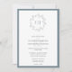 Cette élégante et formelle faire-part de mariage bleue poussiéreuse comprend une couronne de feuilles et vos propres initiales monogrammes sur une arrière - plan blanche et typographie et script classique, entourée d'une bordure bleue poussiéreuse. Cette invitation est facile à customiser avec vos propres informations de mariage. Il s'agit d'un design simple et classique du mariage formel n'importe quel lieu mariage romantique, et peut être utilisé pour les mariages qui se tiennent au printemps, été, automne ou hiver.