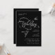 Faire-part de mariage noir et blanc élégant avec calligraphie tourbillonnant romantique avec détails sur le dos. Parfait pour toute saison. Pour une personnalisation plus avancée de cette conception, cliquez sur le BOUTON OUTIL DESIGN BLEU ci-dessus !