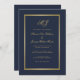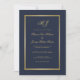 Invitation vos invités mariages dans le style avec cette élégante invitation personnalisée marine bleu monogramme. Le design simple présente des initiales en faux or monogramme en faux or script avec tous vos détails mariages pour personnaliser bordé d'un cadre en faux or brillant sur un arrière - plan bleu marine. Meilleurs voeux pour votre mariage et mariage ! Conçu par Susan Coffey.