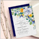 Une faire-part de mariage colorée et éclatante, avec une belle aquarelle verte feuillage botanique et des feuilles d'eucalyptus. Donnez le ton de votre journée spéciale avec cette élégante et élégante faire-part de mariage fleurie jaune, blanc et bleu. Dotée d'un design sophistiqué orné de fines fleurs jaunes, de fleurs blanches douces et d'accents bleus gracieux, cette invitation respire romantisme et charme intemporels. La typographie raffinée et les détails aquarelles aérés créent une esthétique moderne et fraîche, parfaite pour les mariages du printemps et de l'été. Que vous planifiez une fête de jardin, une cérémonie en bord de plage ou une réunion à la campagne, cette invitation magnifiquement conçue ajoute une touche d'élégance et de chaleur à votre papeterie mariage.